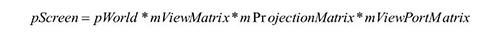 如图1所示,世界坐标变换到屏幕坐标需要的矩阵变化。首先定义世界坐标系下的一个点为pworld。通过相机获取它的视图矩阵为mviewmatrix,投影矩阵为mprojectionmatrix,视口矩阵为mviewportmatrix。则定义屏幕中的点为pscreen。